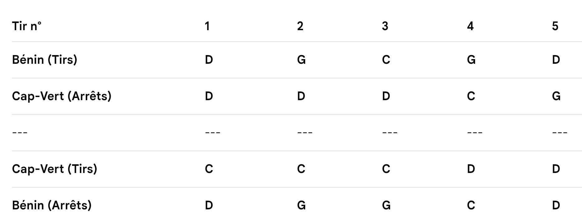 After 90 minutes of tension and aggression, the fate of the two nations was decided in the penalty shoot-out lottery. In this exercise in nerves, the goalkeepers got the better of the forwards. Despite a diligent start, Benin came up against a Cape Verde goalkeeper in a state of grace, capable of anticipating the majority of Benin's attempts. For Cape Verde, the precision was surgical, giving the Squirrels' last line of defence little chance.