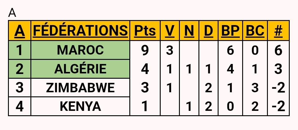 Le statu quo persiste. En raison du dĂ©faut de validation des listes de convoquĂ©s par les fĂ©dĂ©rations du Zimbabwe, du Kenya et dâAlgĂ©rie, les rĂ©sultats restent inchangĂ©s. Ces nĂ©gligences organisationnelles continuent de peser sur le bon dĂ©roulement de la compĂ©tition.