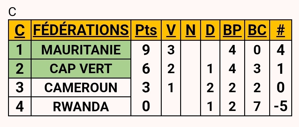 Contrairement aux deux autres poules, le groupe C a tenu toutes ses promesses en termes de suspense. Les Mourabitounes ont arraché une victoire capitale, synonyme de qualification pour le prochain tour. Si la Mauritanie a globalement dominé les débats, les Requins Bleus du Cap-Vert se sont montrés particuliÚrement coriaces.