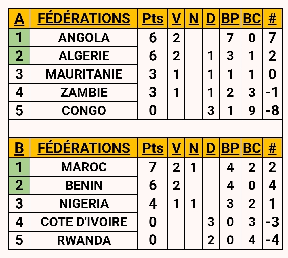 [Victory by forfeit: Benin advance[/b], winning their match "on the green carpet". The Ivorian team's failure to comply with organisational regulations led to their forfeit, giving Benin victory and points without playing.