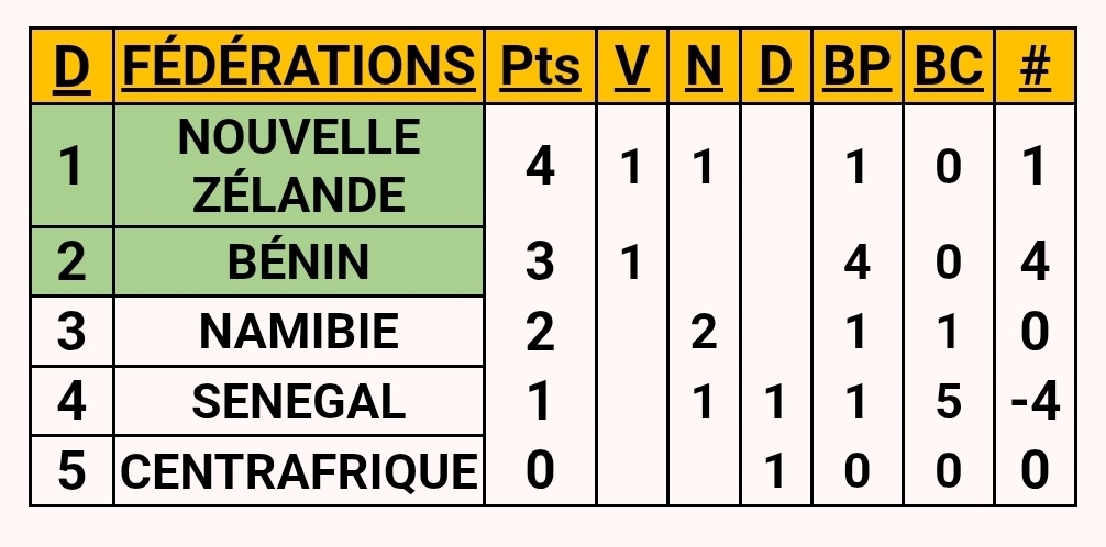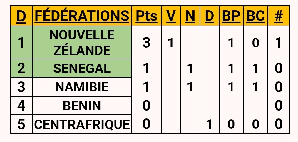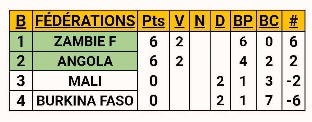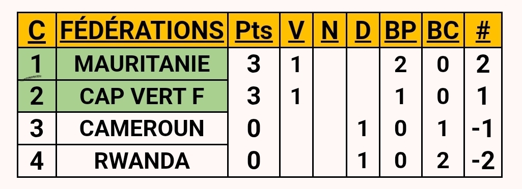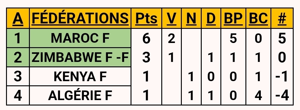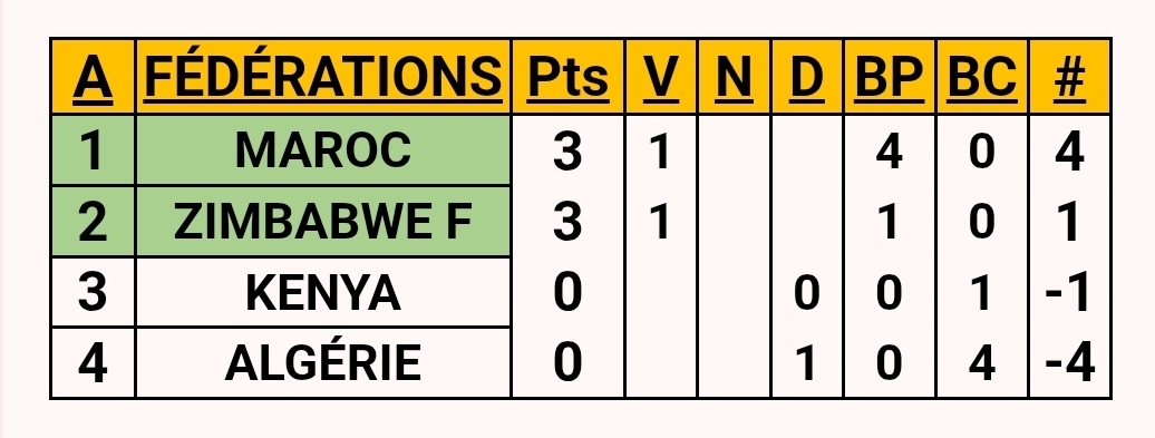 The status quo persists. Due to the failure of the Zimbabwe, Kenya and Algeria federations to validate their call-up lists, the results remain unchanged. These organisational shortcomings continue to affect the smooth running of the competition.