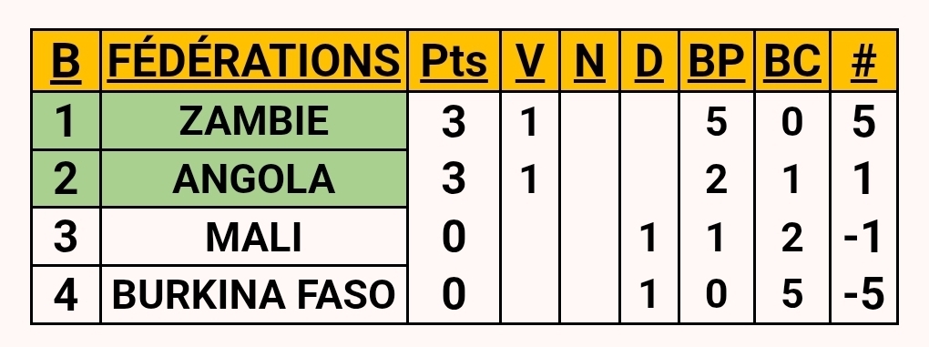 While Zambia enjoyed an easy victory over Mali (forfeited for the same reasons), the duel between Angola and Burkina faso was far more indecisive. Each team had its moments, dominating one period of the match after another. Despite the efforts of the Burkinabe to unlock their account in this cup, Angola were able to make the difference and win by the narrowest of margins (2-1).