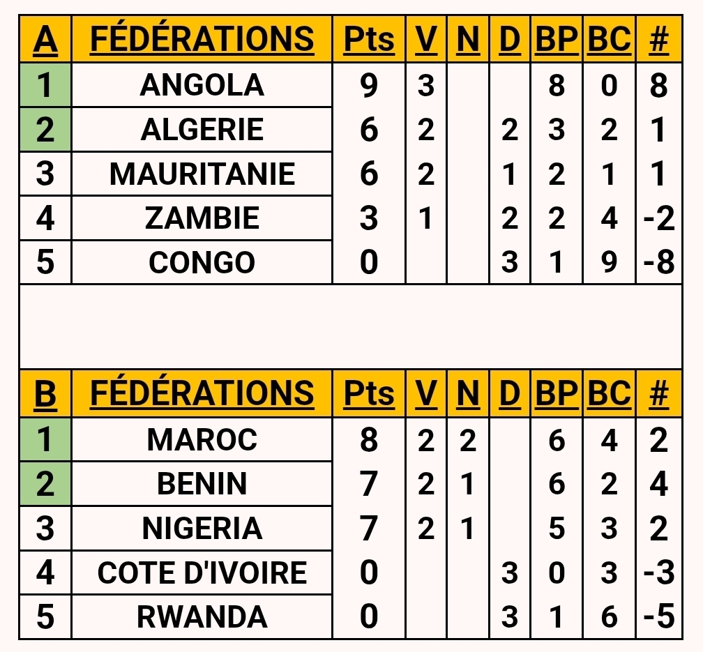 [Victory by forfeit: Benin advance[/b], winning their match "on the green carpet". The Ivorian team's failure to comply with organisational regulations led to their forfeit, giving Benin victory and points without playing.